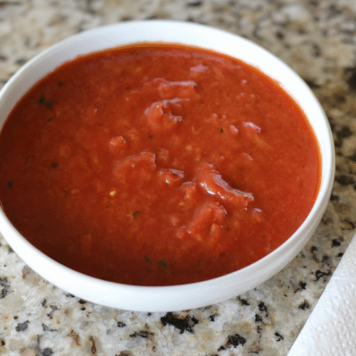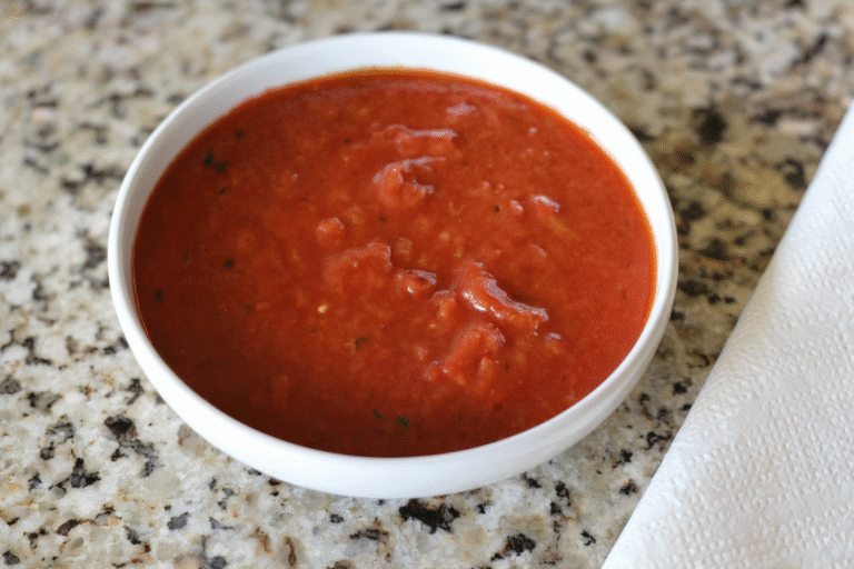 This is a fast, no-cook pizza sauce that cooks in the oven on the pizza itself. The most important part is using high-quality canned tomatoes, like San Marzano. Hand-crushing whole tomatoes gives a chunkier texture, but standard crushed tomatoes work fine.