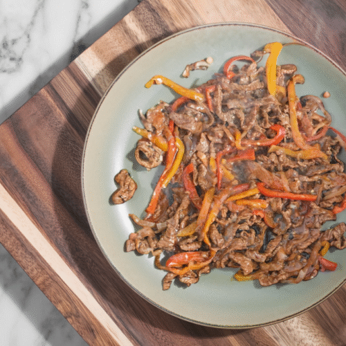 - Heat remaining oil, sear marinated beef in single layer 90 seconds.