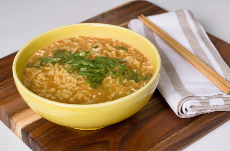 Add the ramen noodles and cook for ~2 minutes. Stir in the seasoning packets from the ramen and continue to cook for another 30 seconds.