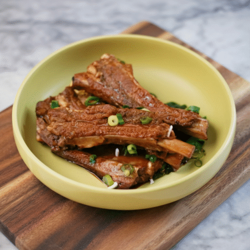 Return the ribs to the skillet and toss them in the glaze until they are fully coated and glossy. Serve immediately.