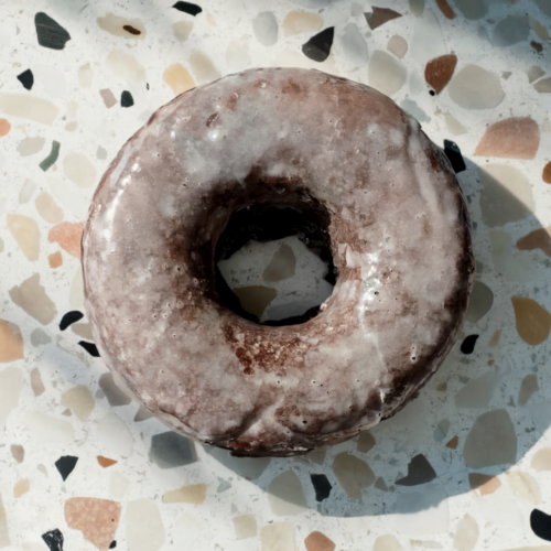 Once the donuts are cool, dip the top of each donut into the glaze.