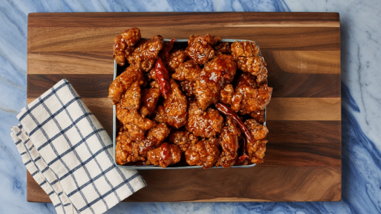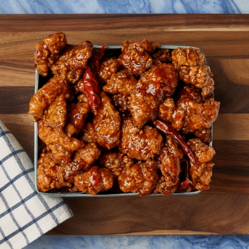 Add the double-fried chicken to the sauce and toss quickly to coat every piece. Serve immediately with the blanched broccoli.