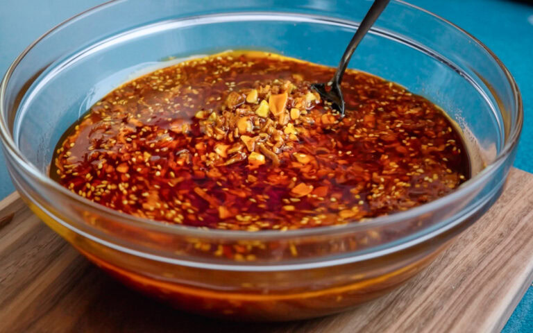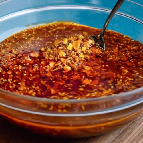 Stir everything together until it’s well combined. Let the chili crisp cool completely before transferring it to jars. It will keep in the refrigerator for at least a month.