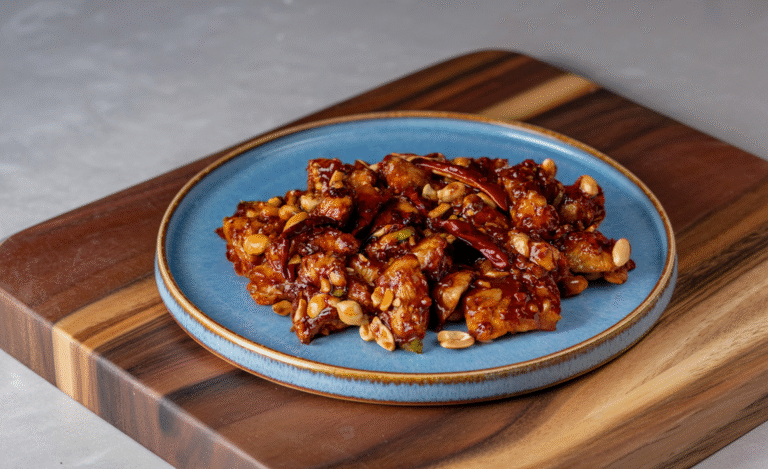 Add the cooked chicken, peanuts, and sliced celery to the sauce. Toss everything together until the chicken and vegetables are completely coated in the sauce.