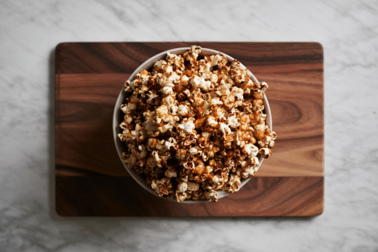 This popcorn has a fish sauce and sriracha caramel plus nori and bonito flakes – it hits every possible flavor receptor at once. The hour-long bake at 225F is what transforms it from sticky and weird to perfectly crispy; you have to stir it every 15 minutes or it burns.