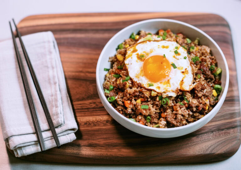 The key to good fried rice is using cold, day-old rice. Fresh rice has too much moisture and will steam instead of fry. Before you start, break up the cold rice with your hands so there are no large clumps.