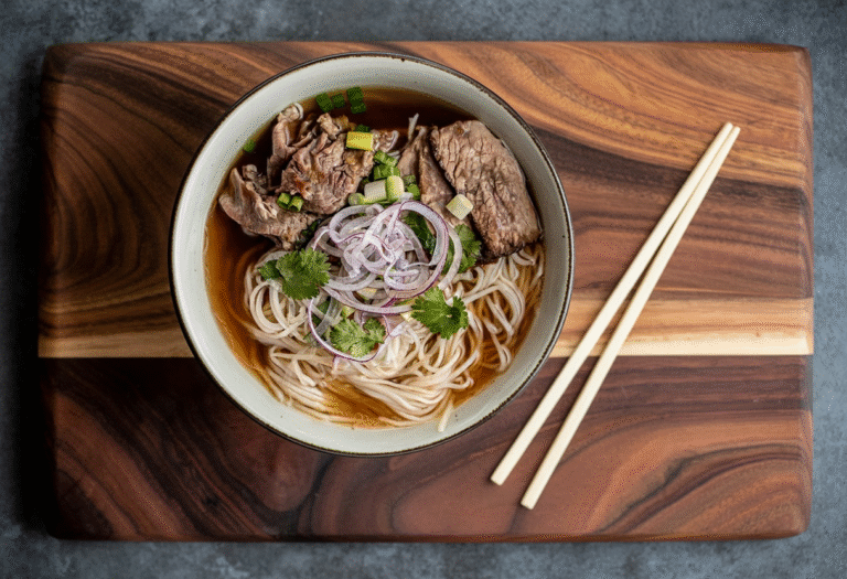- Cook fresh pho noodles 30-60 seconds, divide into bowls.